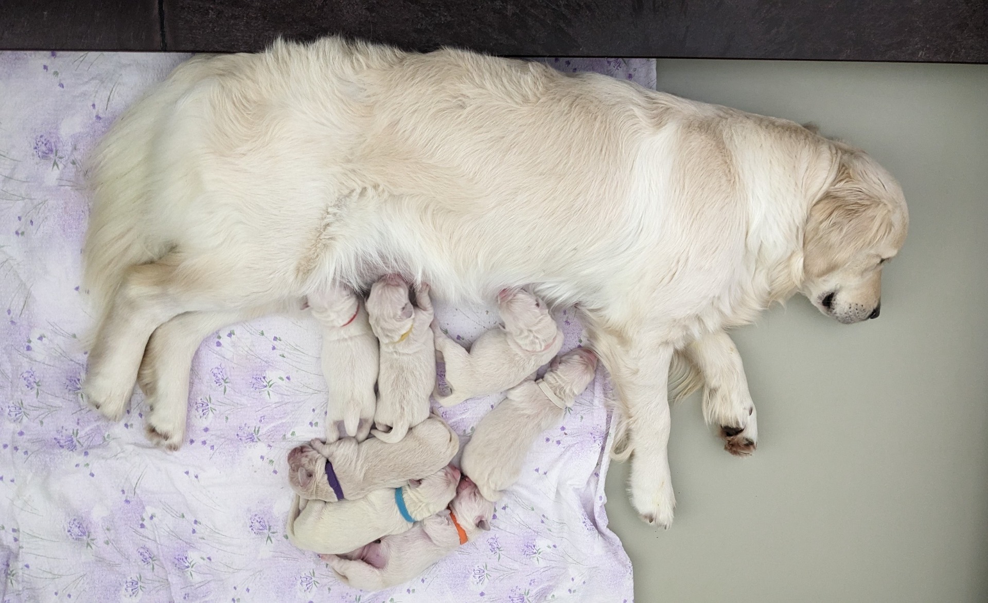 Narodilo se 7 štěňátek, 6 holčiček a 1 chlapeček. Byla to dřina, ale Roxinka to zvládla na výbornou.